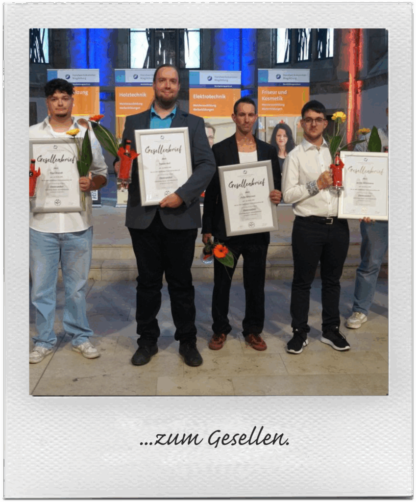 Wir freuen uns über unsere beiden Gesellen Herrn Keil  und Herrn Mierzwa die im August ihren Gesellenbrief erhielten. Herr Keil konnte dank seiner sehr guten Leistungen die Lehrzeit sogar verkürzen und steht nun als Jungfacharbeiter gemeinsam mit Herrn Mierzwa unserer Firma tatkräftig zur Seite.